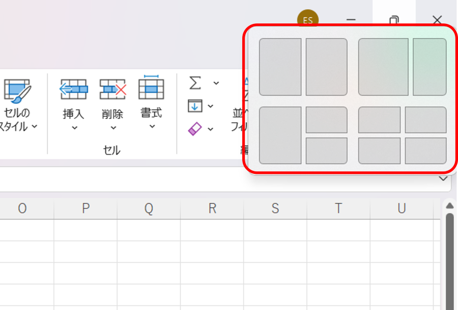 - Excelの「スナップレイアウト」を表示します。