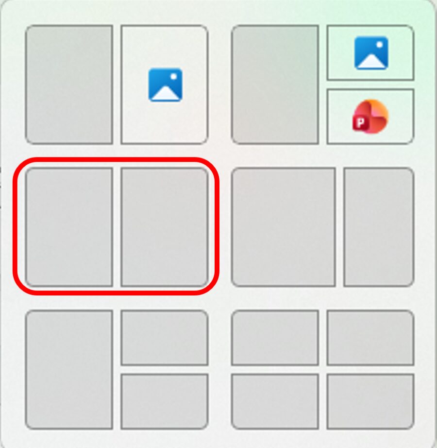 - 「スナップレイアウト」の分割パターンが表示されます。